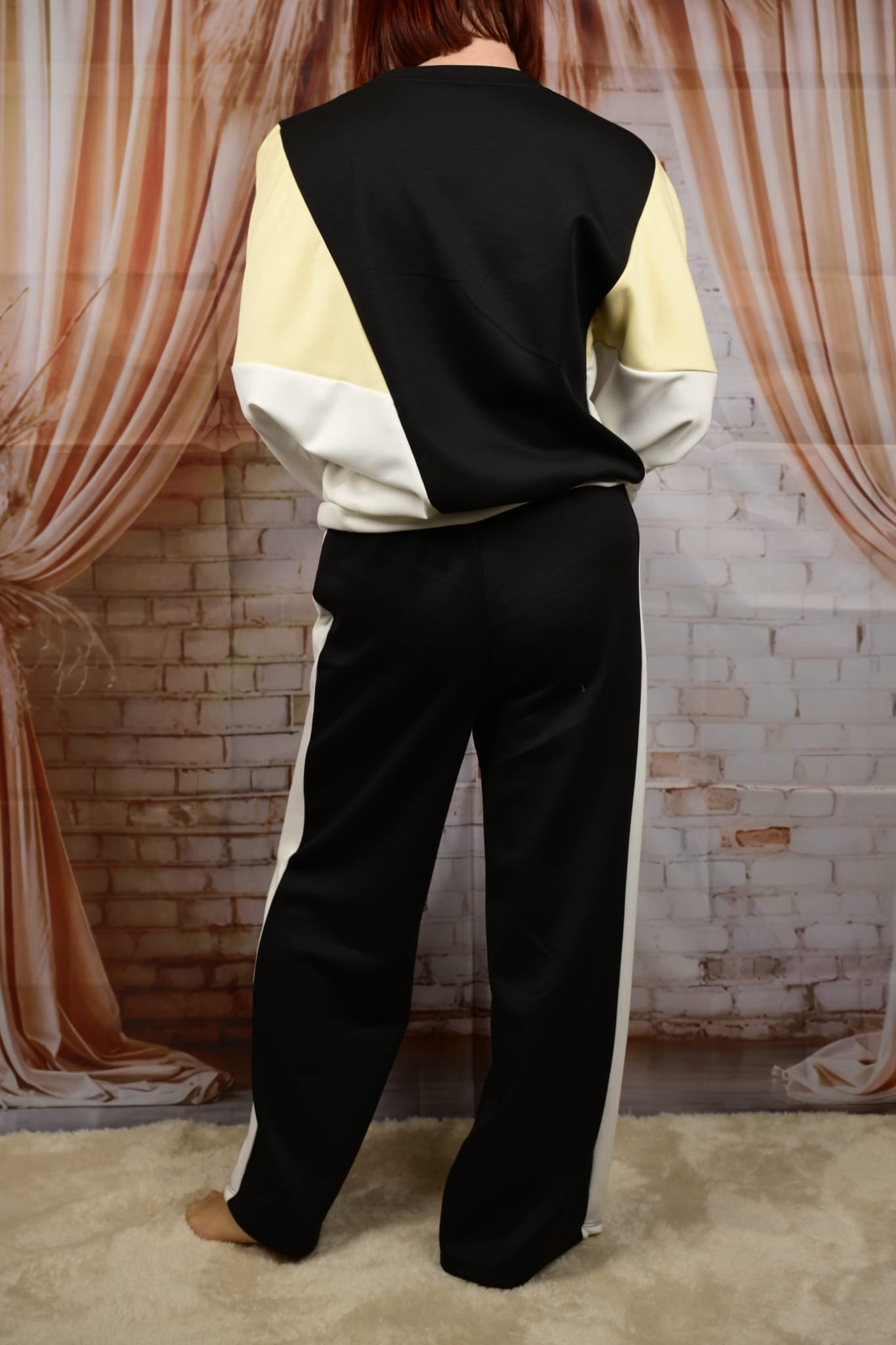 - Kleurrijke mouwen in geel en wit voor een speelse twist